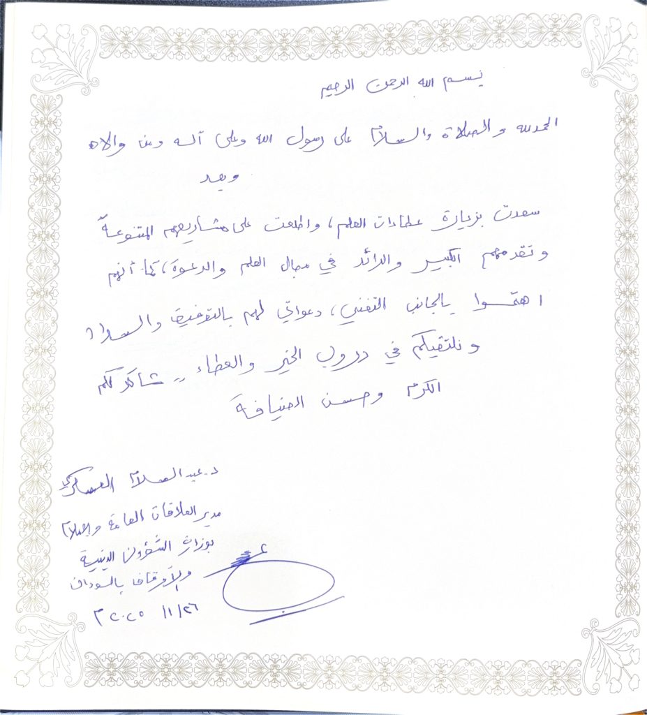 الرئيسية/السجل الذهبي/د. عبدالسلام العسكري ، مدير العلاقات العامة في وزارة الشؤون الدينية والاوقاف في السودان د. عبدالسلام العسكري ، مدير العلاقات العامة في وزارة الشؤون الدينية والاوقاف في السودان فيسبوك X لينكدإن واتساب مشاركة عبر البريد طباعة فيسبوك X لينكدإن واتساب مشاركة عبر البريد طباعة شاركها فيسبوك X لينكدإن واتساب مشاركة عبر البريد طباعة